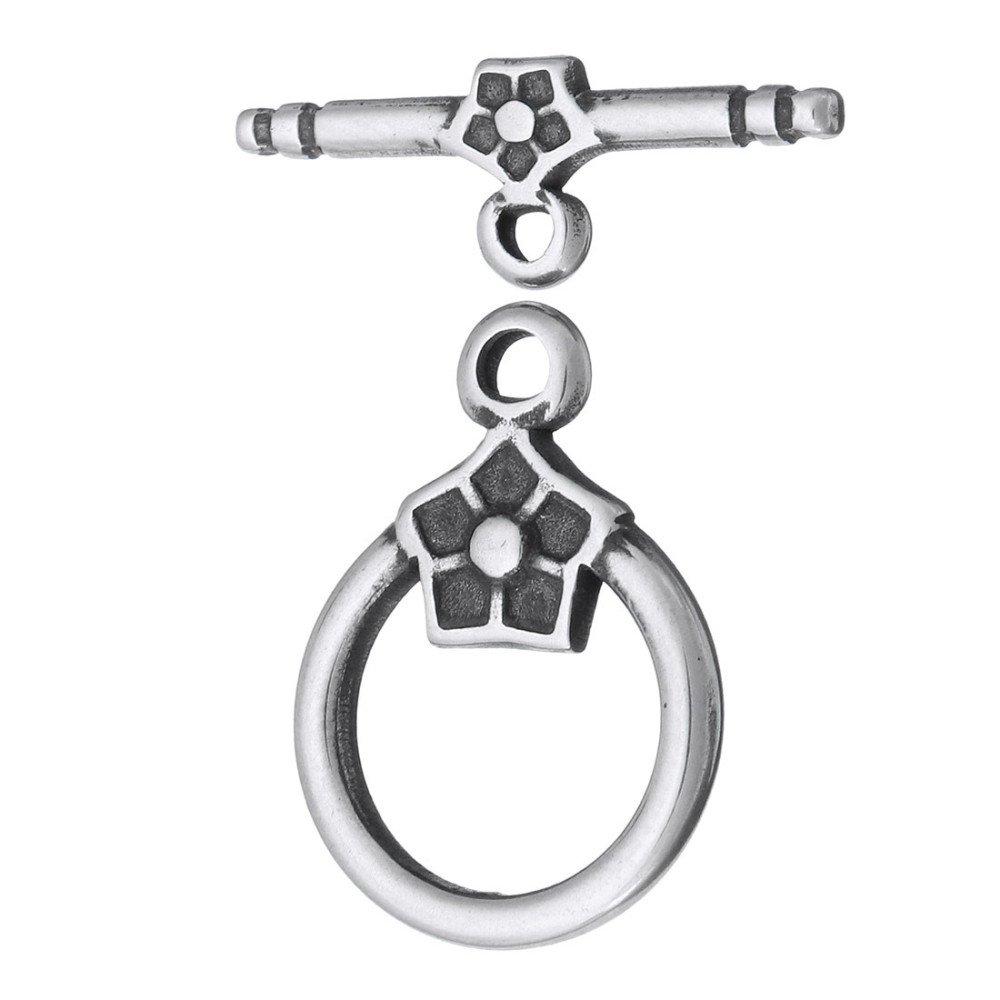 Korálek s kytičkou starostříbrná patina chirurgická ocel