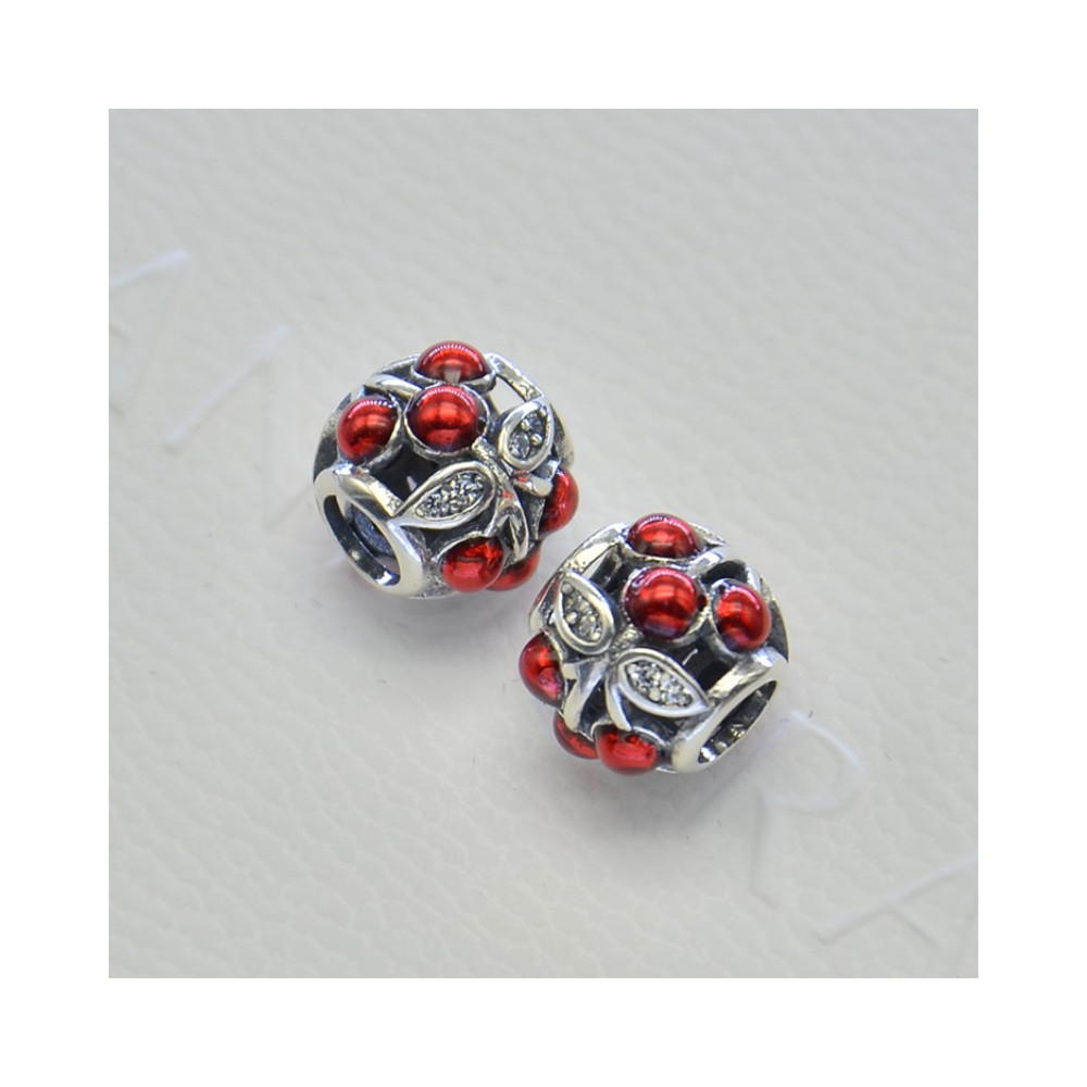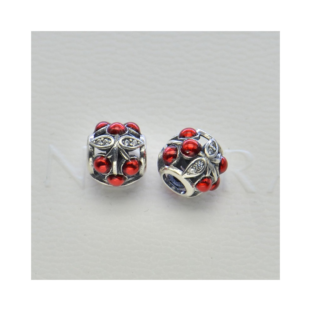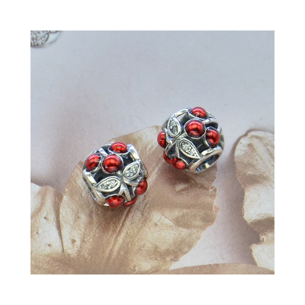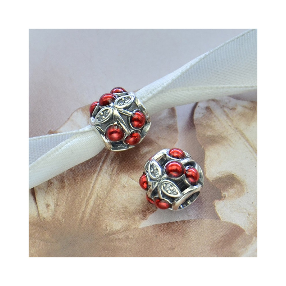 Korálek AG 925/1000 se zirkony barvy Crystal a červenými třešničkami