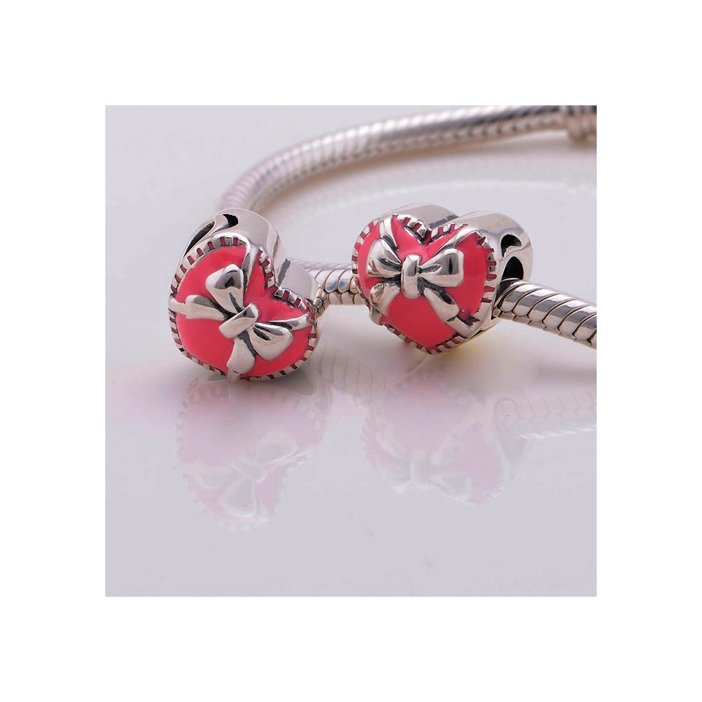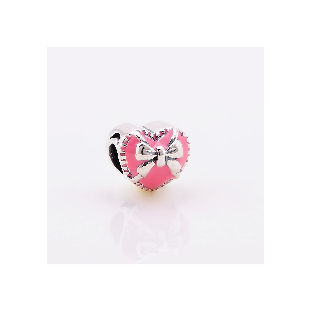 Korálek AG 925/1000 srdíčko s růžovým emailem