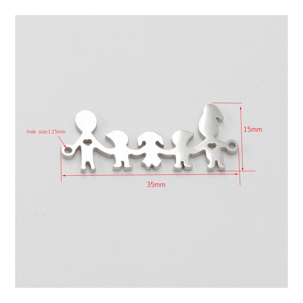 Konektor šťastná rodina 3 děti uprostřed chlapeček-děvče-chlapeček ve dvou barevných variantách z chirurgické oceli