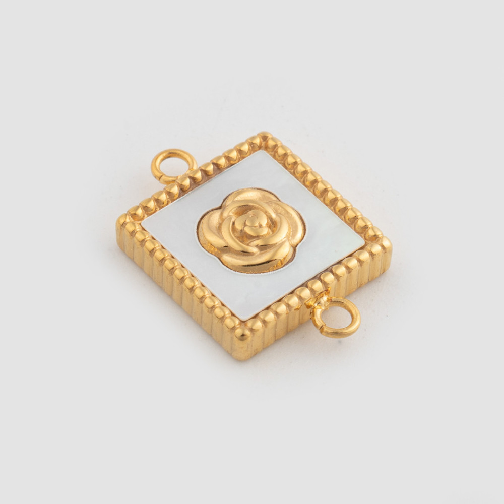 Konektor čtvereček s růžičkou chirurgická ocel dvě barevné varianty