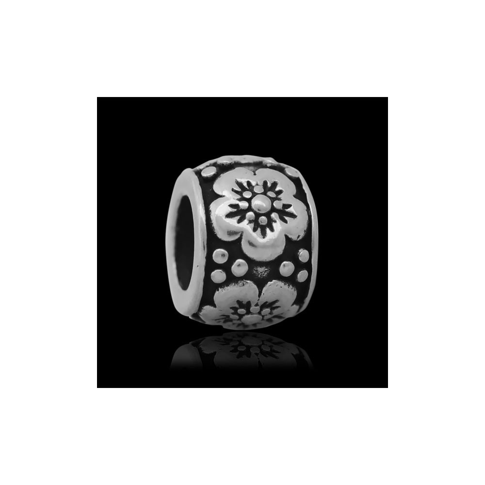 Korálek s kytičkou starostříbrná patina chirurgická ocel