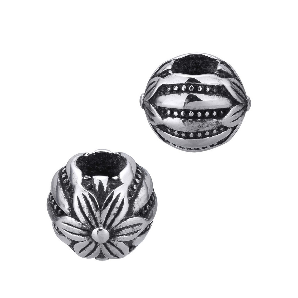 Korálek s kytičkou z růžového emailu a vyrobený z chirurgické oceli