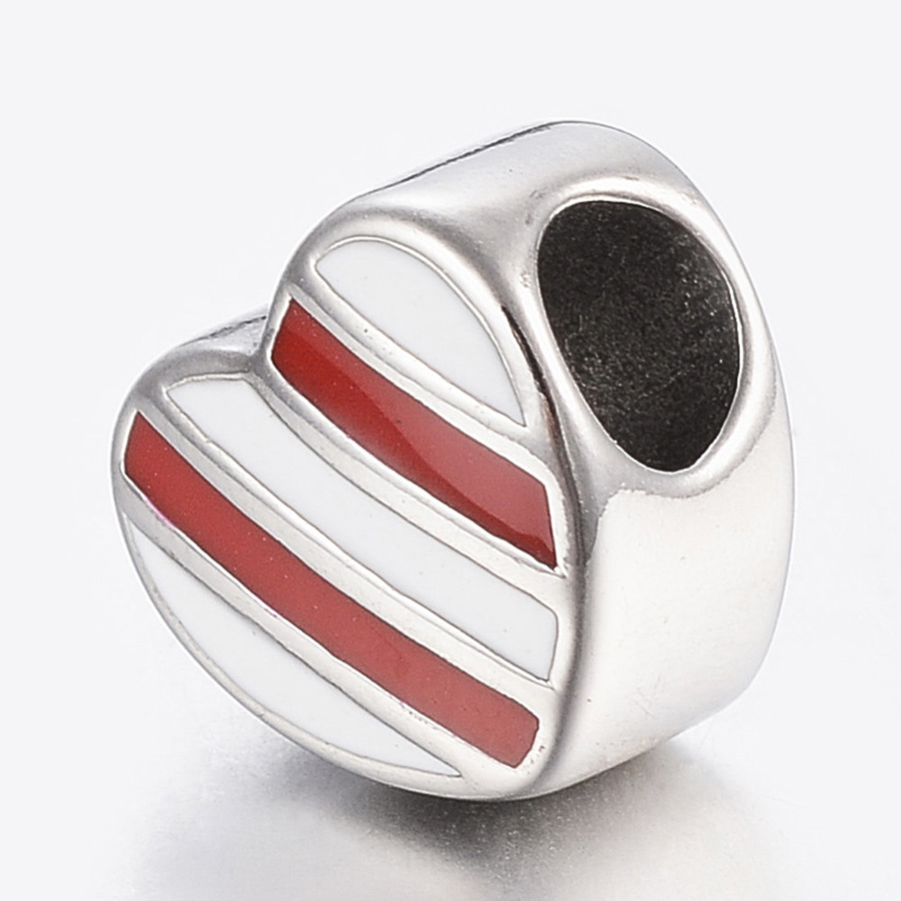 Korálek srdíčko s červeným emailem ve dvou barevných provedeních z chirurgické oceli