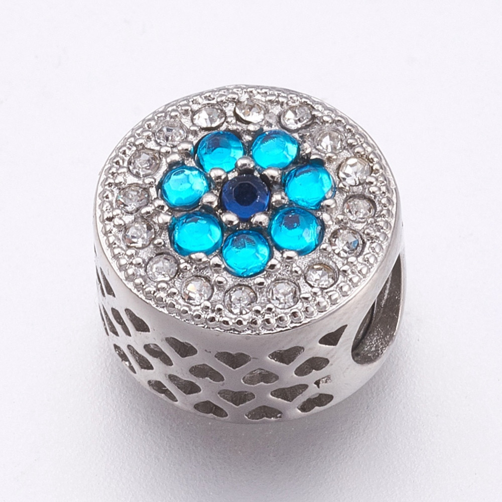 Korálek zlatý mezikroužek s modrou kytičkou vyrobený z chirurgické oceli