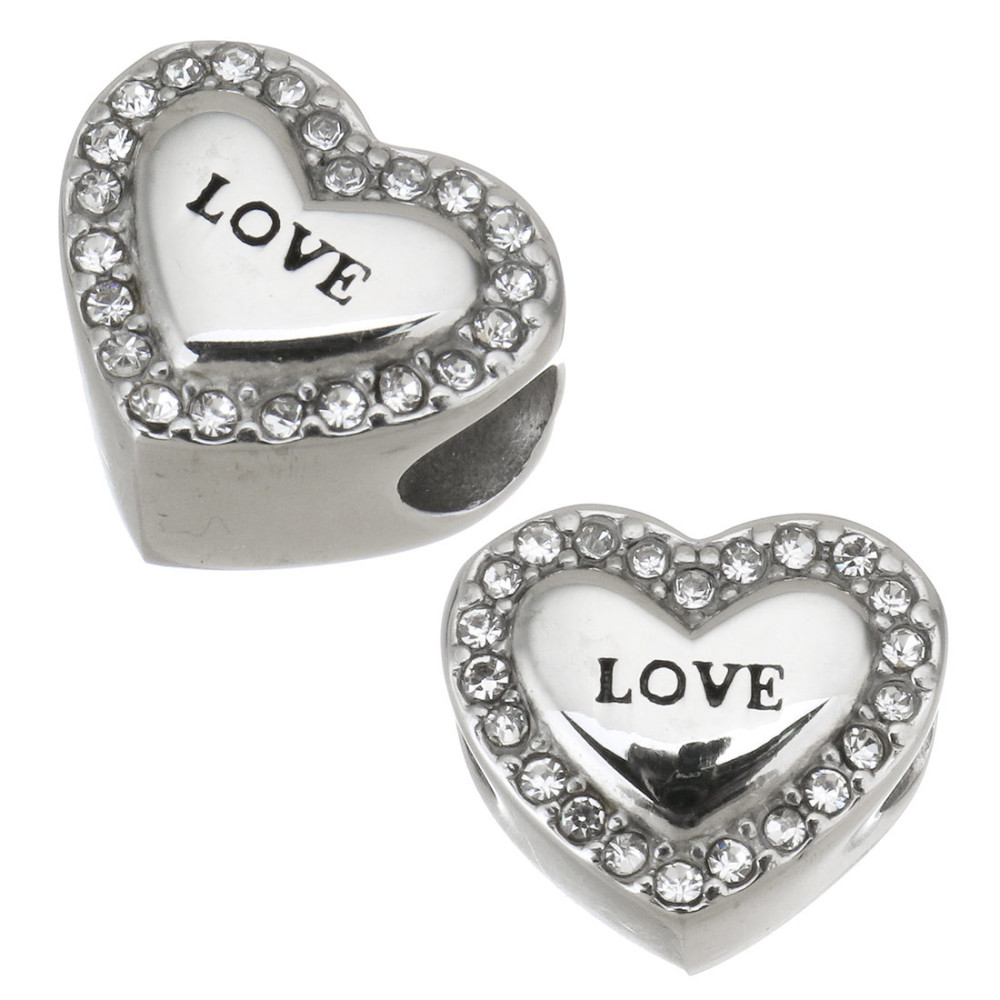 Korálek srdce nápisem LOVE se šatony ve třech barevných variacích z chirurgické oceli