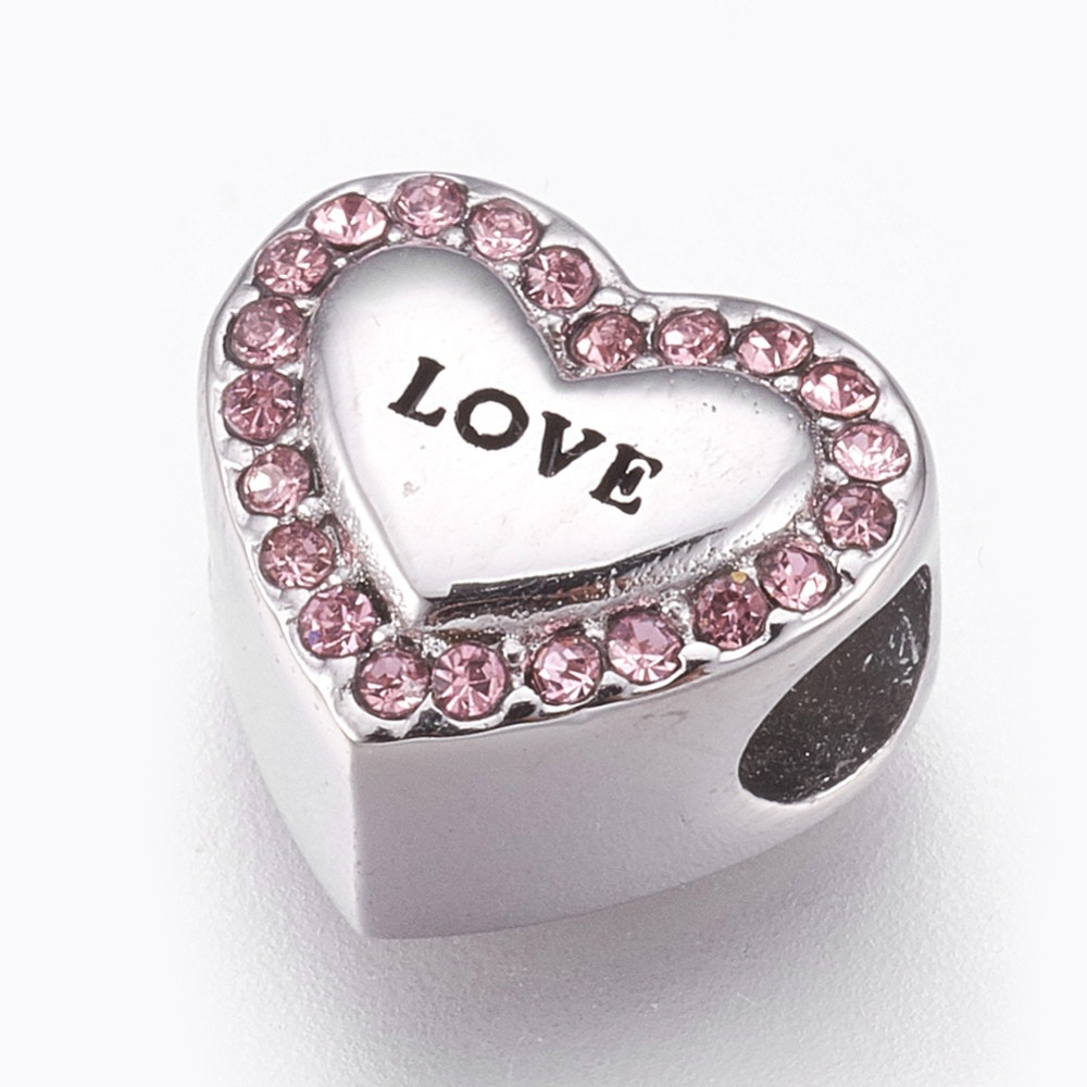 Korálek srdce nápisem LOVE se šatony ve třech barevných variacích z chirurgické oceli