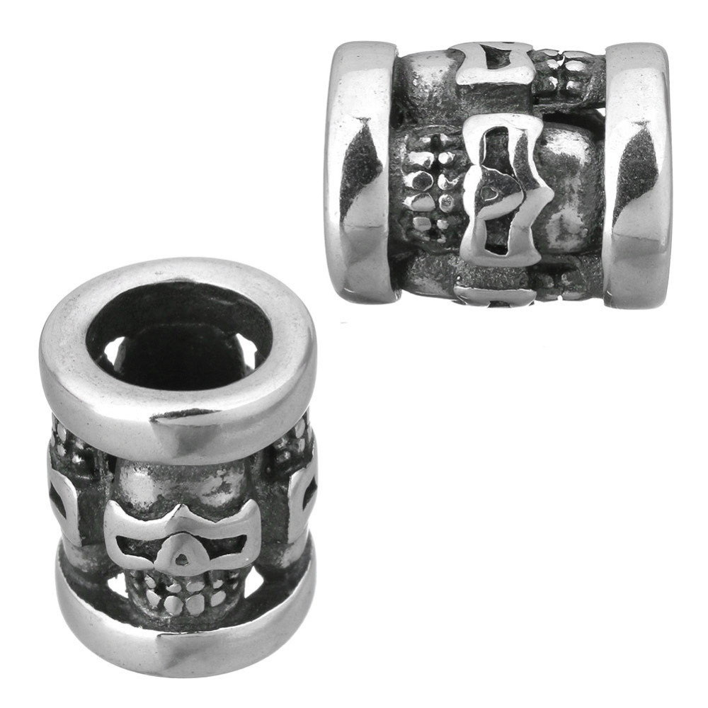 Velkoprůvlekový korálek prořezávaný s lebkami z chirurgické oceli 316