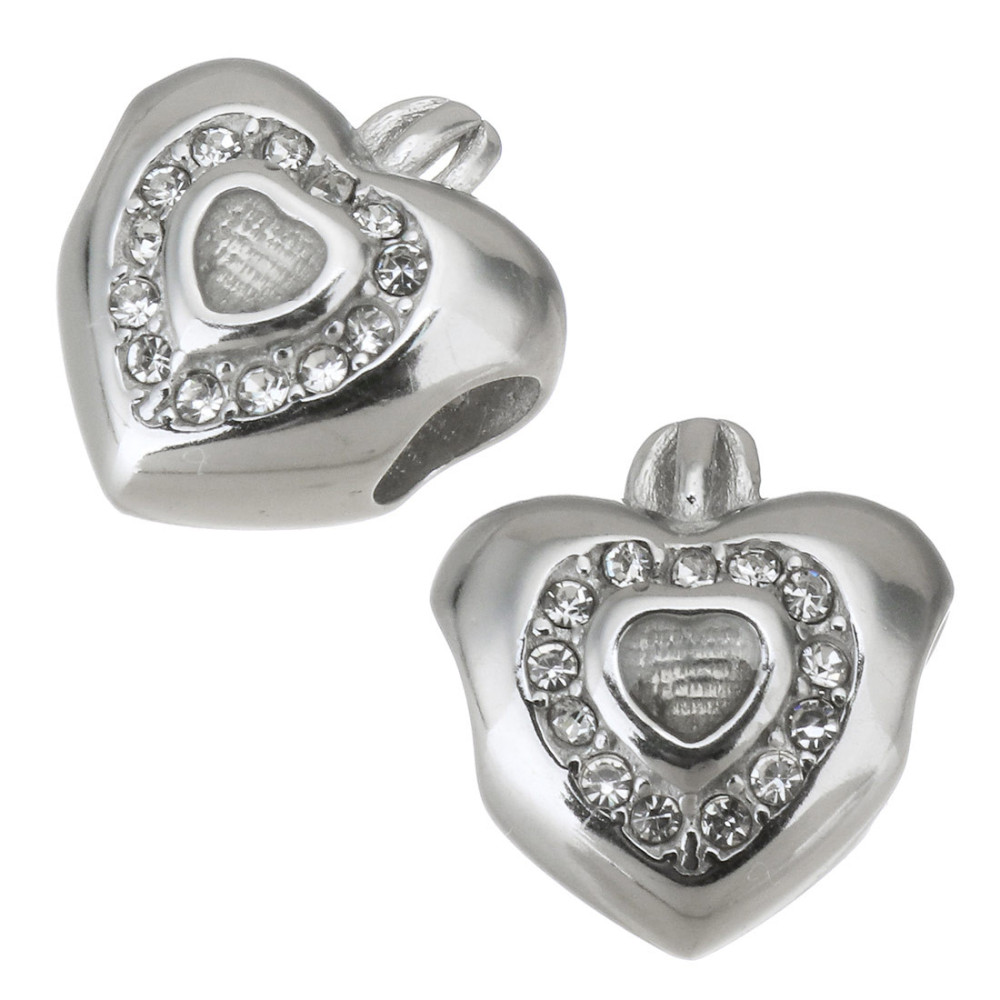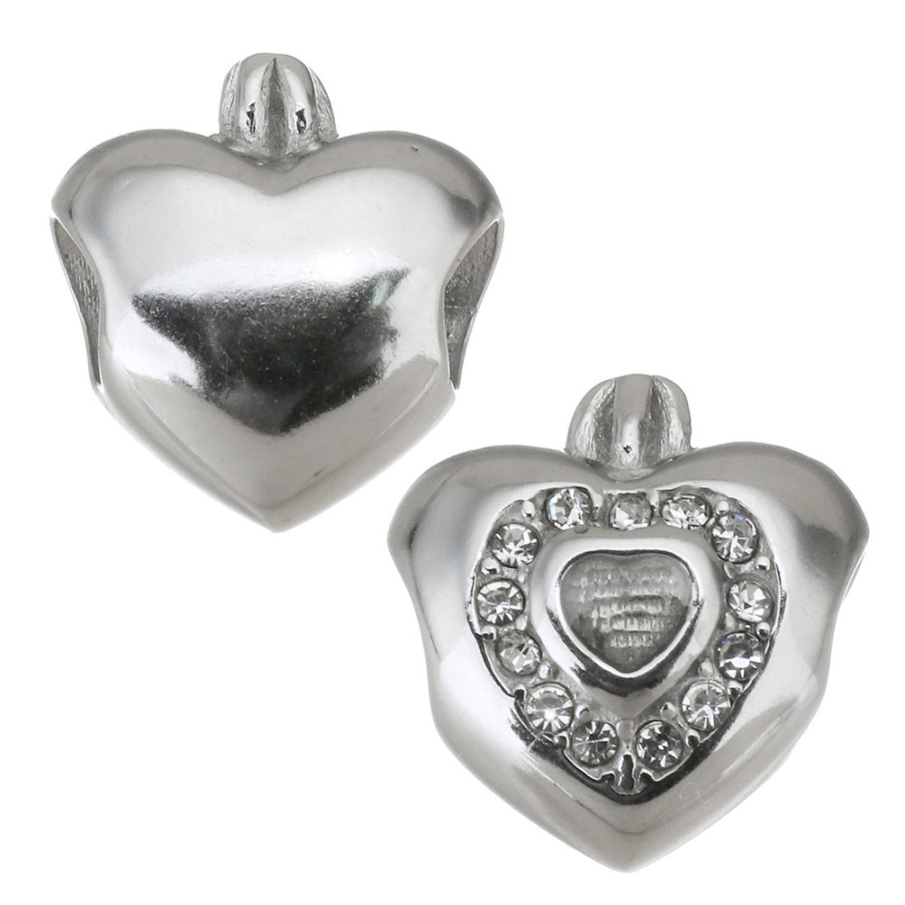 Korálek srdce s korunkou ve dvou barevných kombinacích z chirurgické oceli