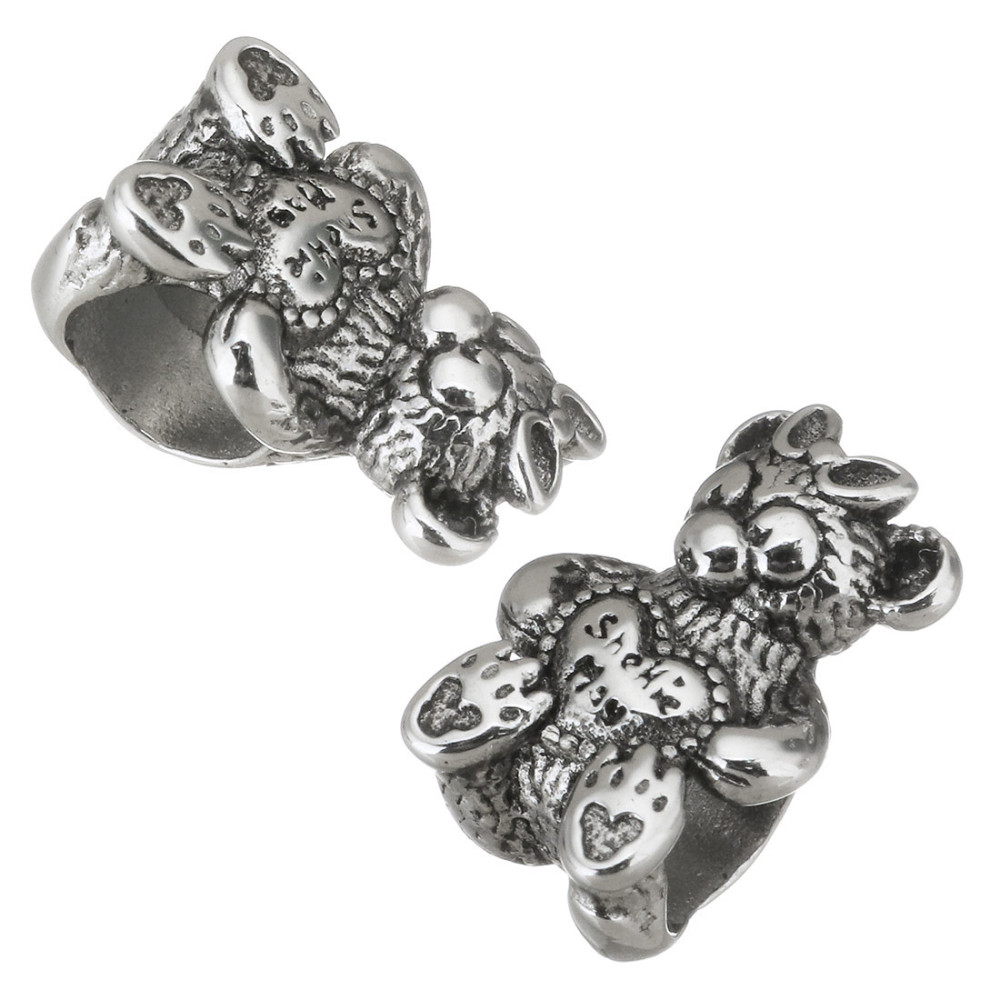 Korálek dva medvídci z chirurgické oceli Starostříbrná patina