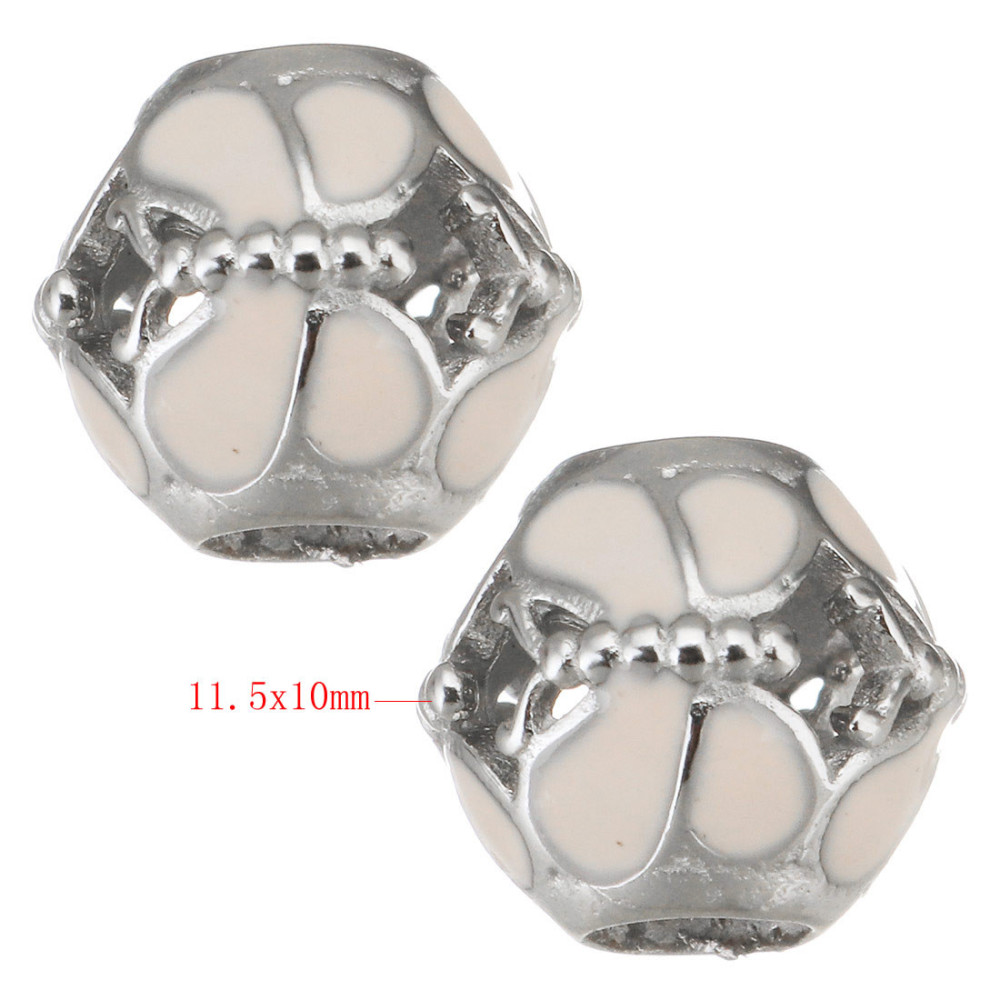 Korálek s velkým průvlekem prořezávaný motýlek s růžovým emailem chirurgická ocel