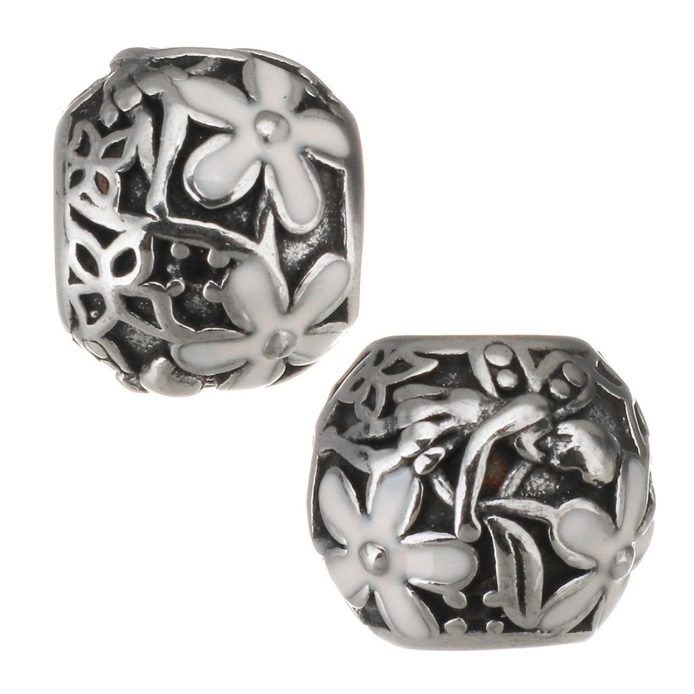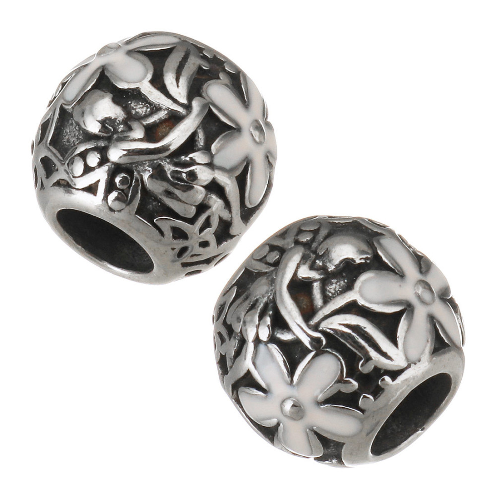 Korálek s fialovou emailovou kytičkou vyrobený z chirurgické oceli