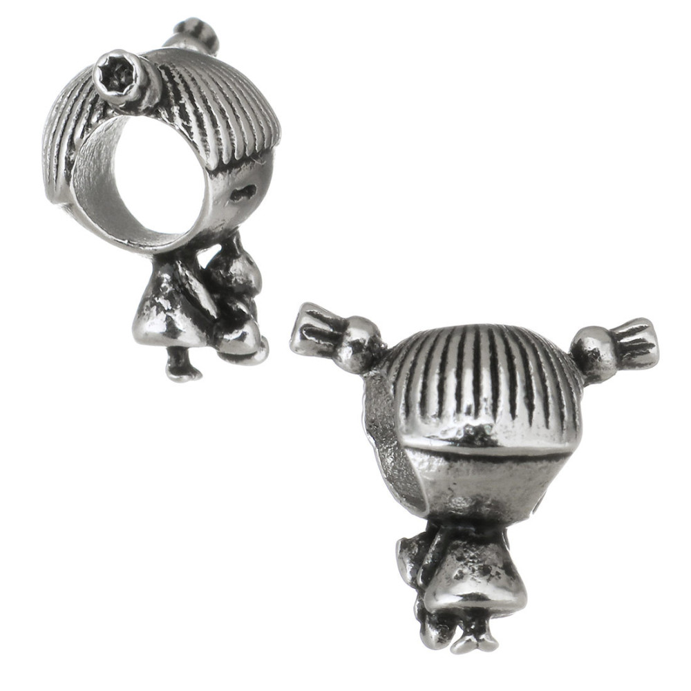 Korálek děvčátko s copánky a medvídkem z chirurgické oceli