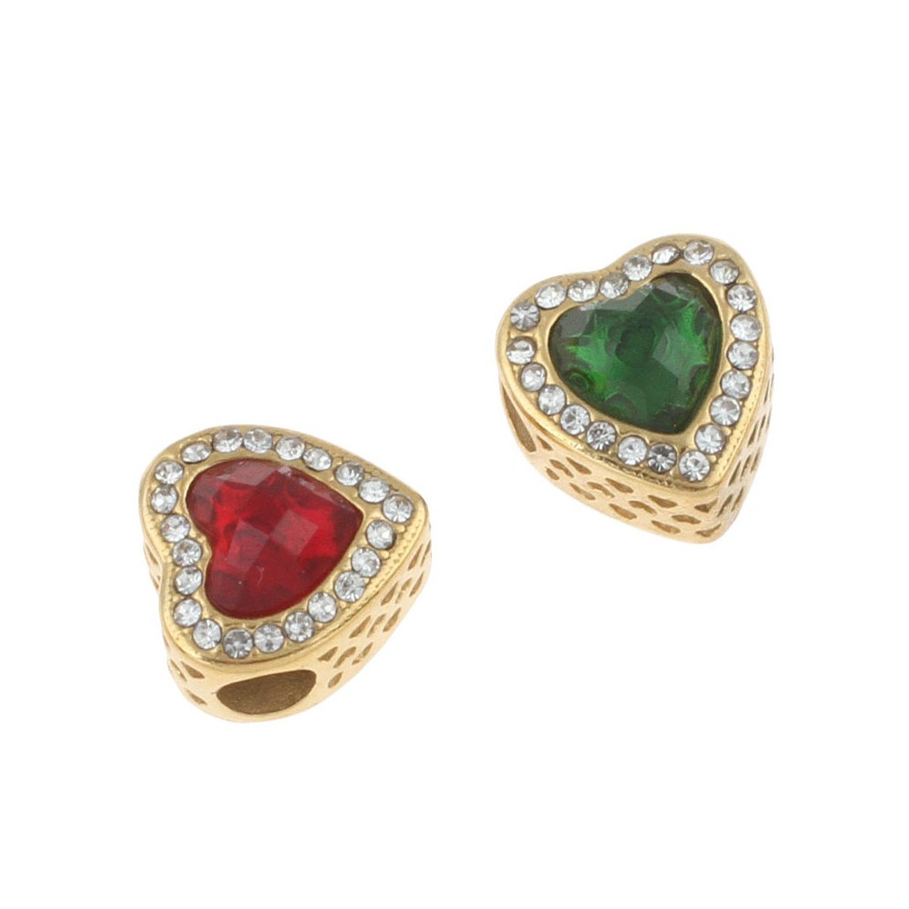 Korálek ve zlaté galvanizaci srdce s barevnými kameny chirurgická ocel