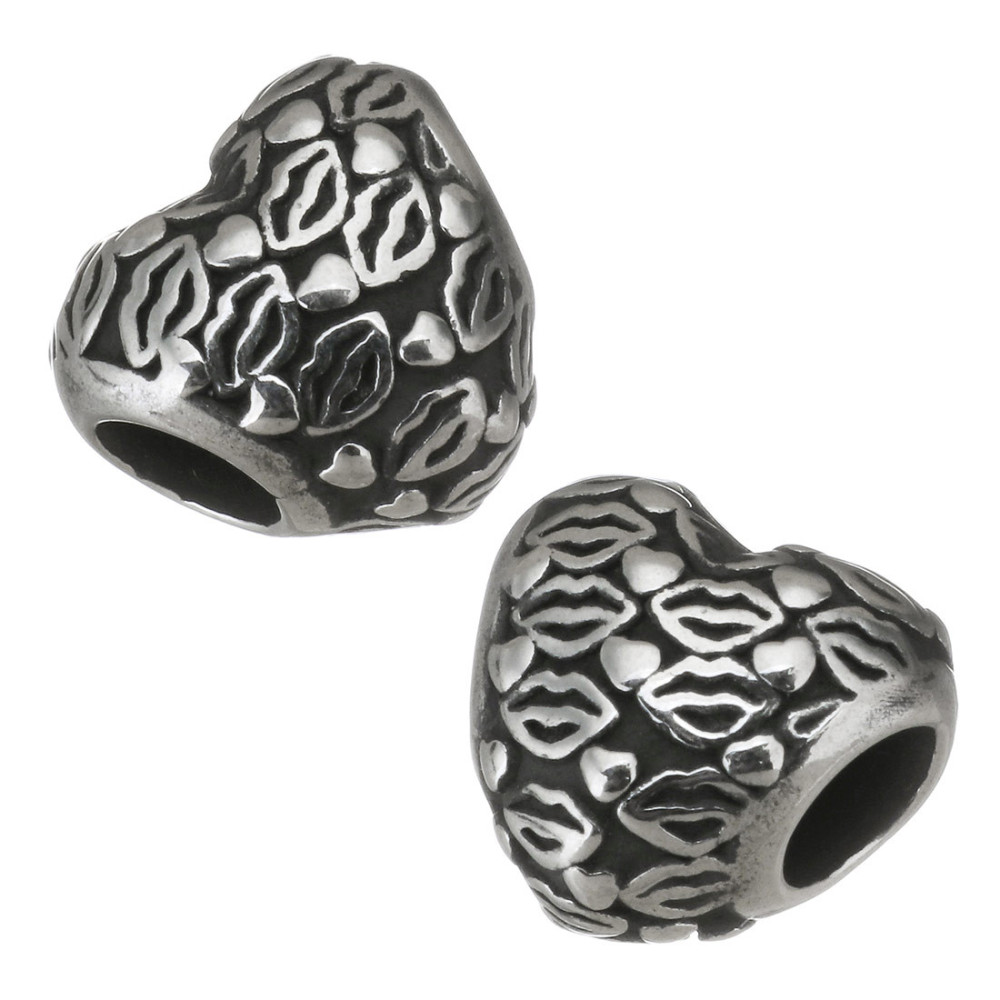 Korálek srdce ozdobené srdíčky a rty dvě barevné varianty chirurgická ocel