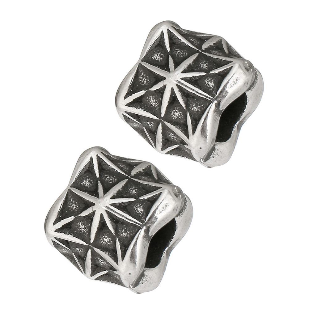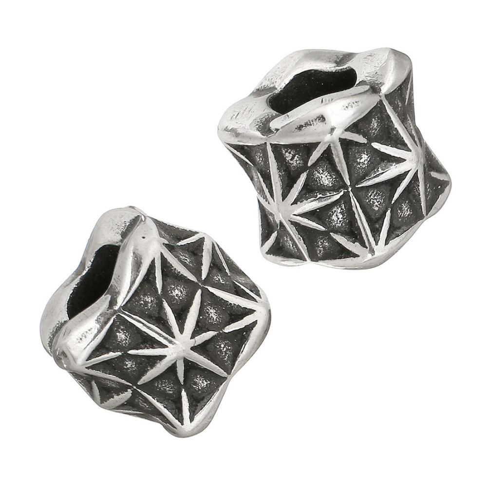 Korálek s velkým průvlekem váleček který svým zdobením připomíná kostku