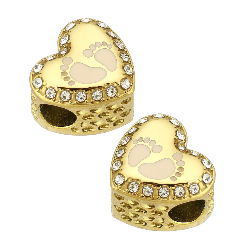 Korálek srdíčko s otiskem chodidel chirurgická ocel dvě barevné varianty