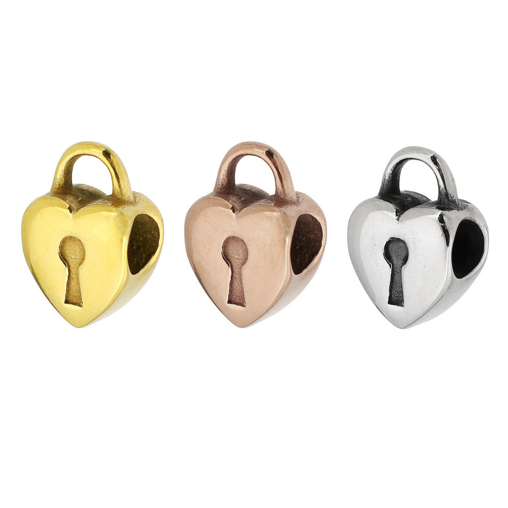 Korálek s velkým průvlekem ve tvaru zámečku z chirurgické oceli