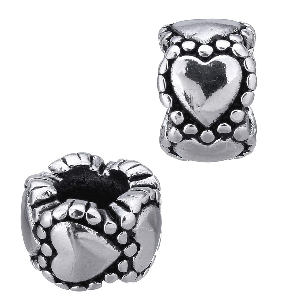 Korálek s velkým průvlekem zdobený srdíčky z chirurgické oceli