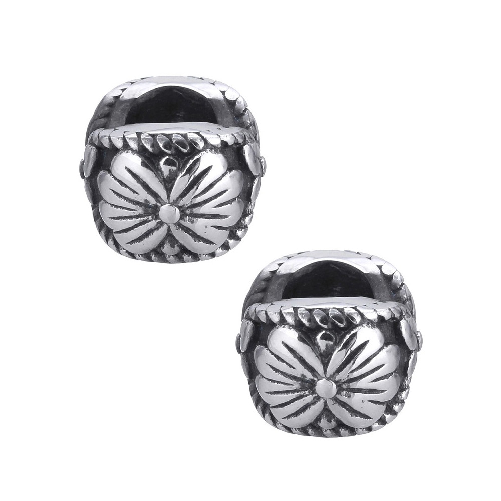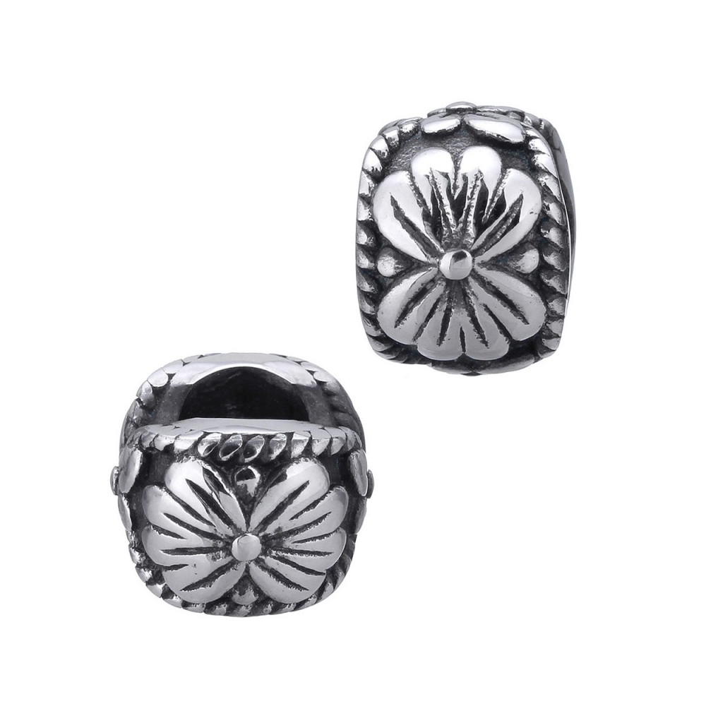 Korálek s ornamentem kytičky ve starostříbrné patině z chirurgická oceli