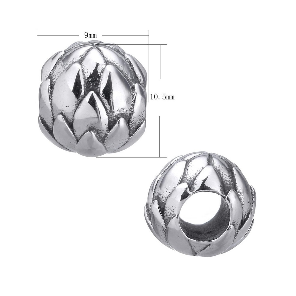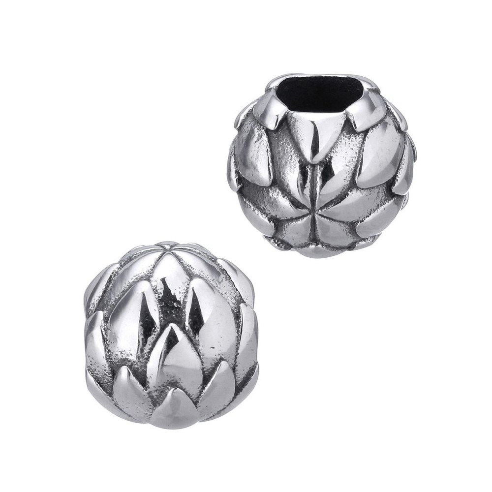 Korálek ozdobený lístečky vyrobený z chirurgické oceli