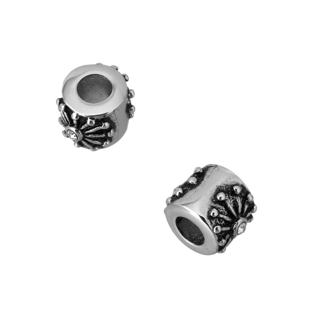 Korálek s kytičkami ve starostříbrné patině z chirurgické oceli
