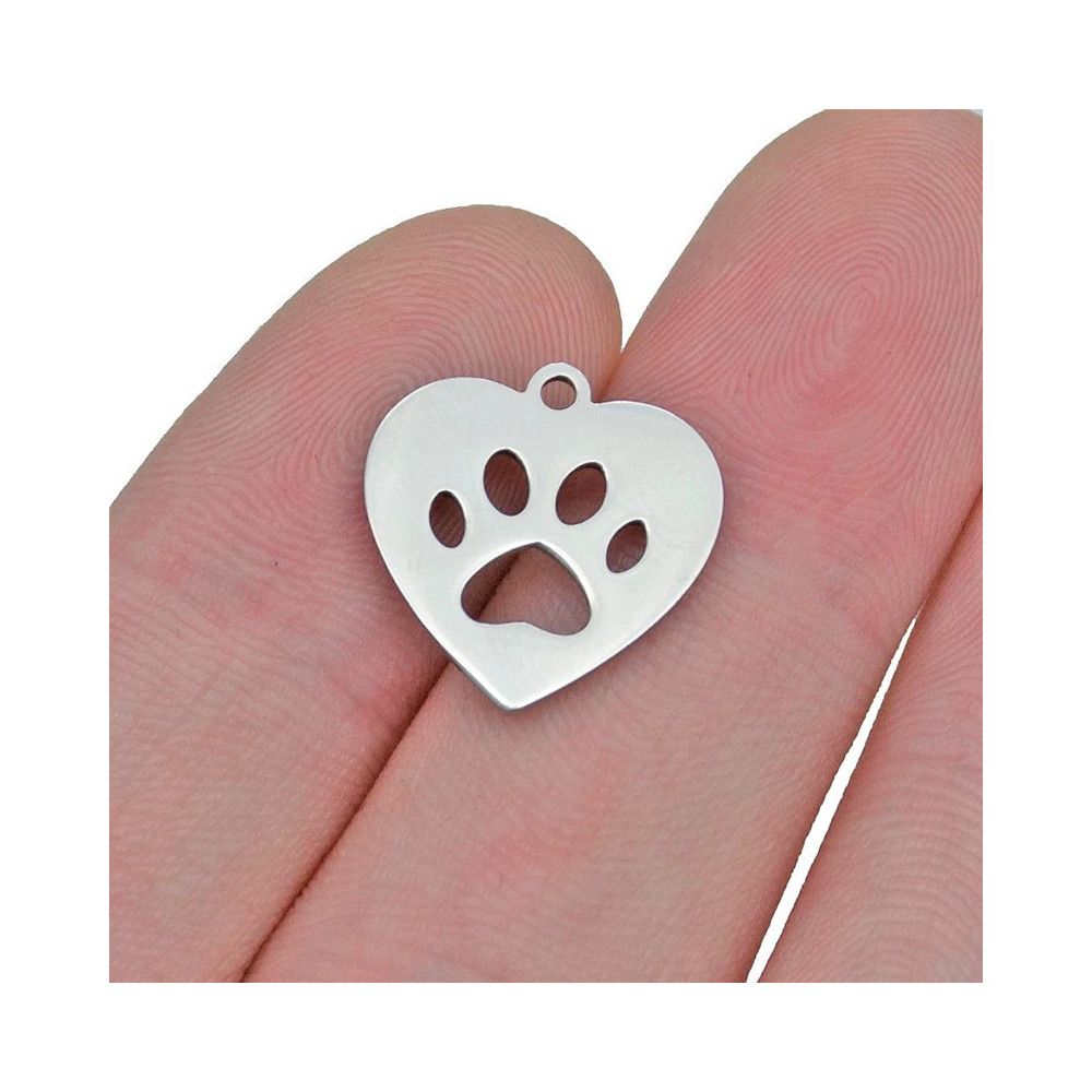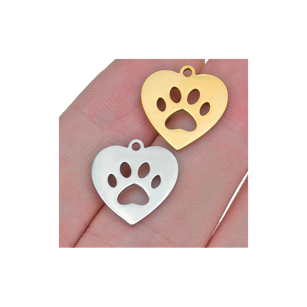 Přívěsek srdíčko s tlapkou z chirurgické oceli dvě barevné kombinace