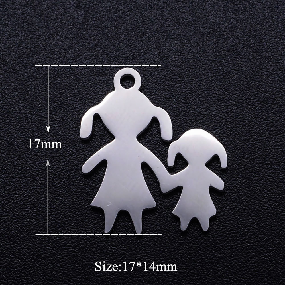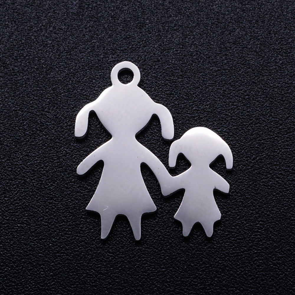 Přívěsek dvě děvčátka s copánky chirurgická ocel dvě barevné varianty