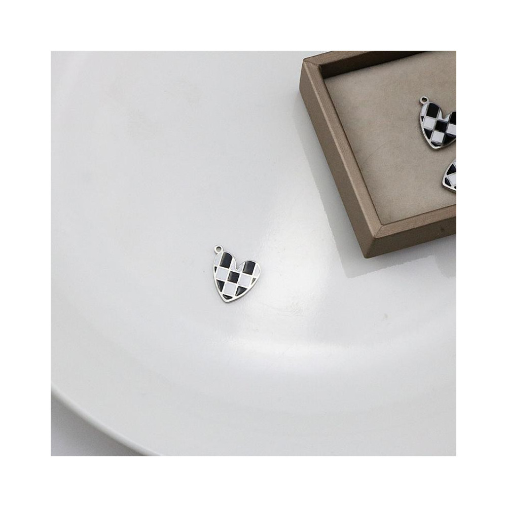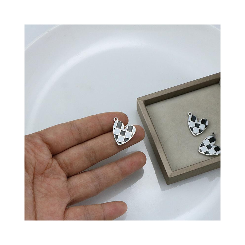 Přívěsek srdce s černobílým emailem chirurgická ocel