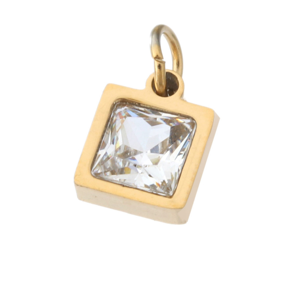 Přívěsek čtverec s bílým kamenem chirurgická ocel