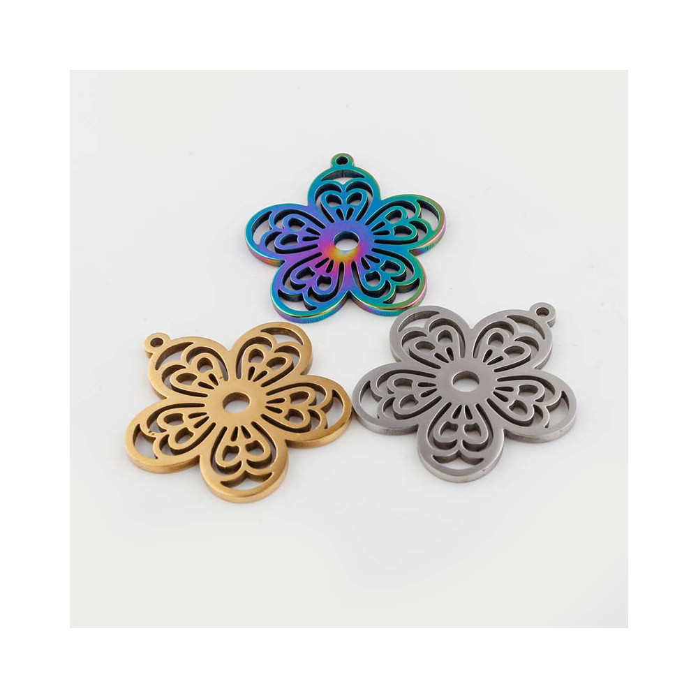 Přívěsek velká kytička ve třech barevných kombinacích z chirurgické oceli