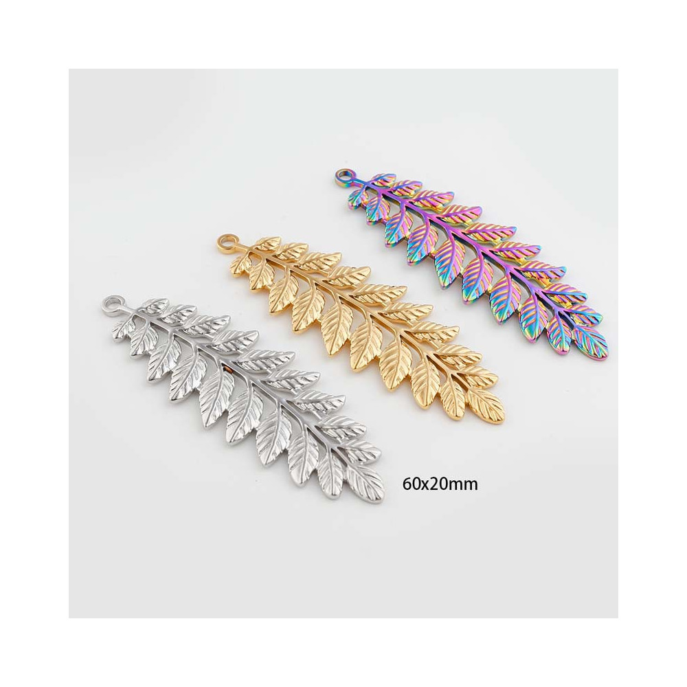 Přívěsek list kapradiny třech barevných kombinacích z chirurgické oceli