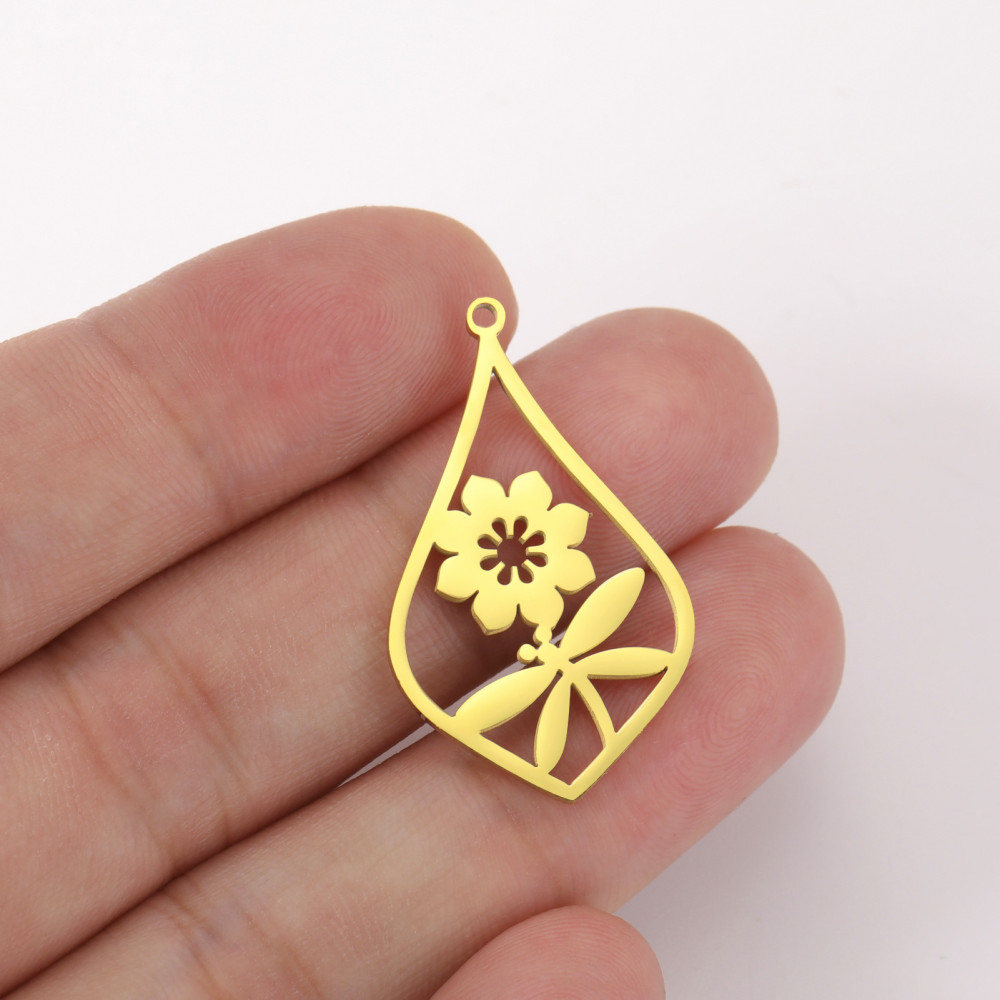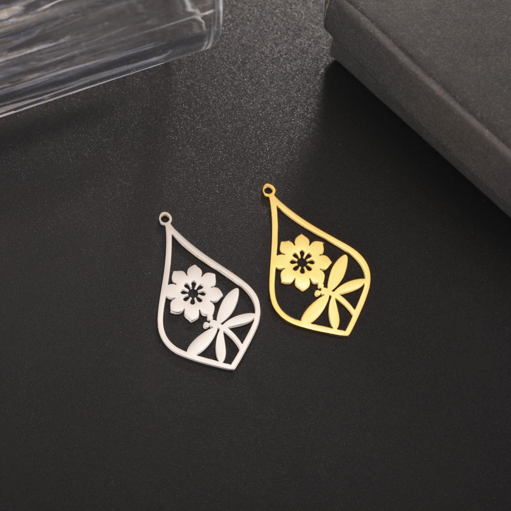 Přívěsek kapka s kytičkou chirurgická ocel dvě barevné varianty
