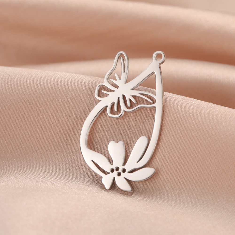 Přívěsek kapka s kytkou a motýlem chirurgická ocel
