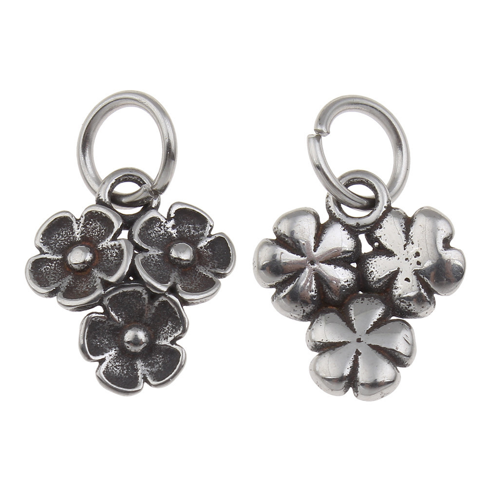 Přívěsek kytička ve starostříbrné patině z chirurgické oceli