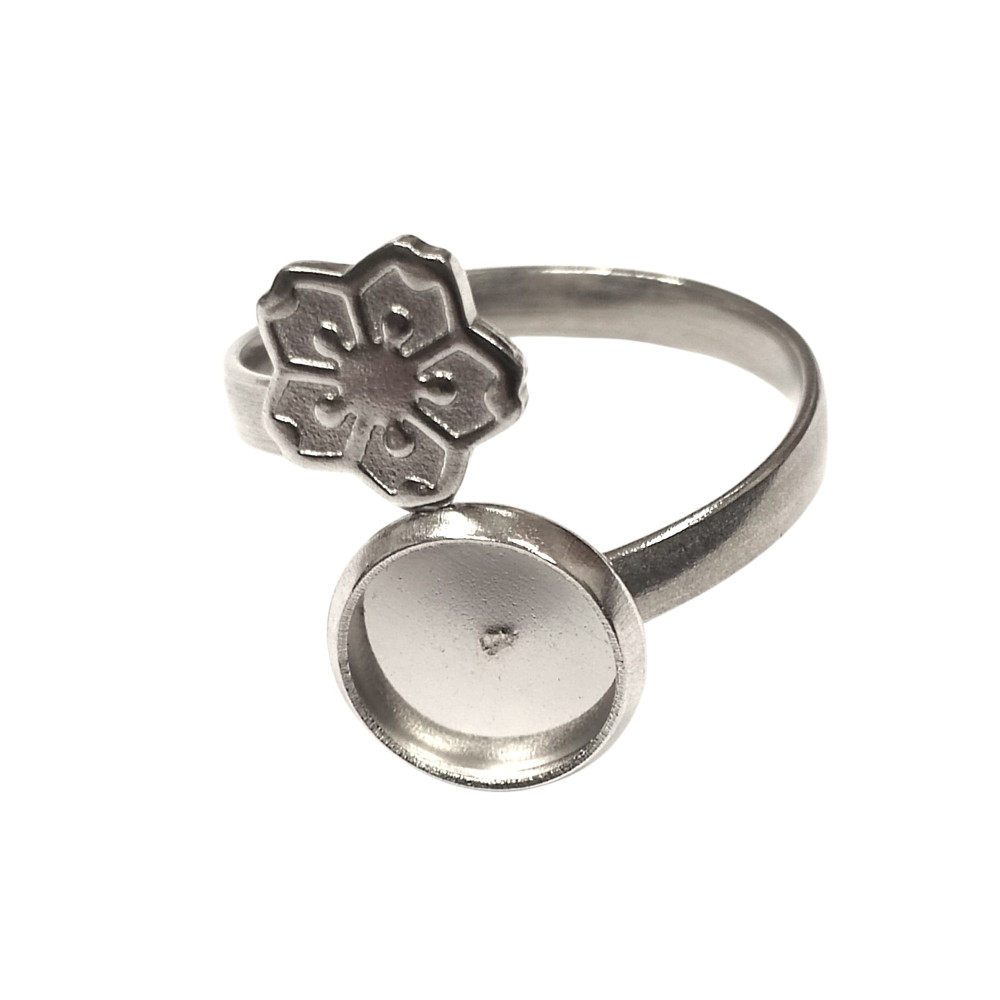 Prstýnek s kulatou miskou a kytičkou chirurgická ocel