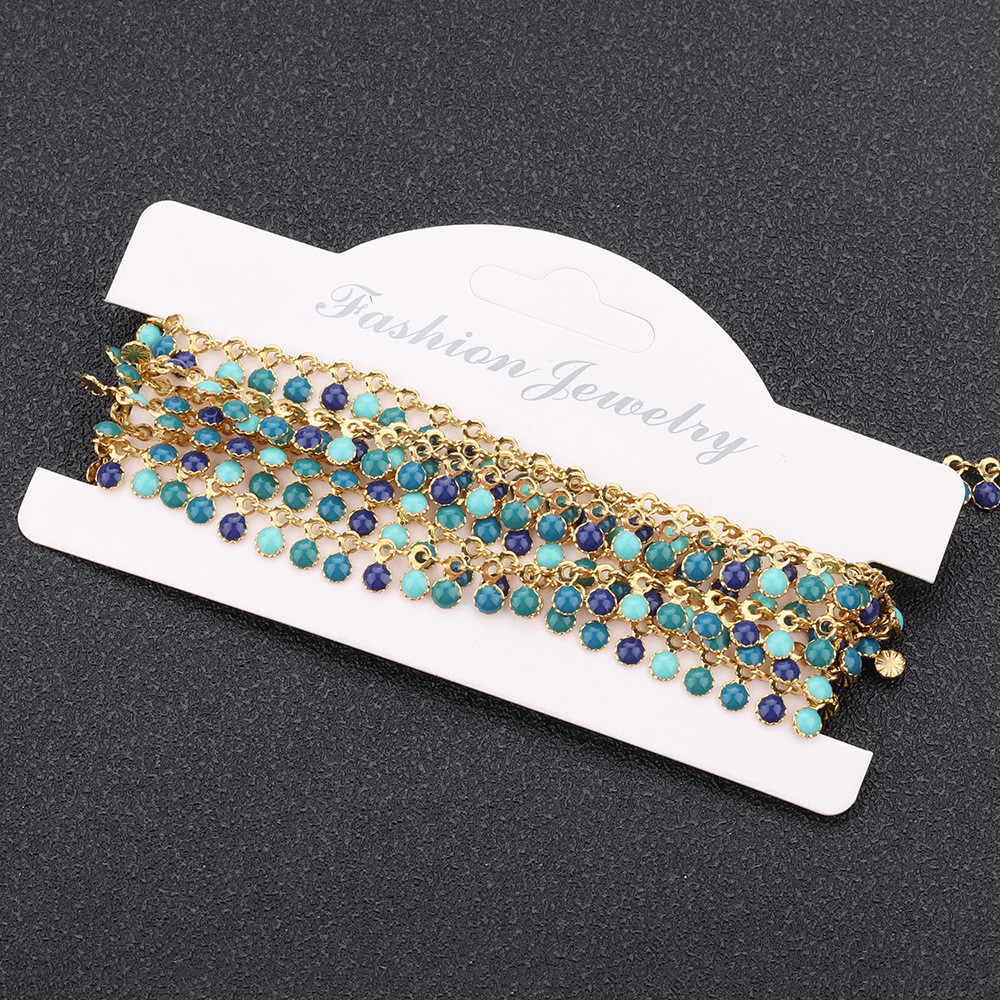 Řetízkovina s barevnými fasetovanými korálky zlatá galvanizace chirurgická ocel