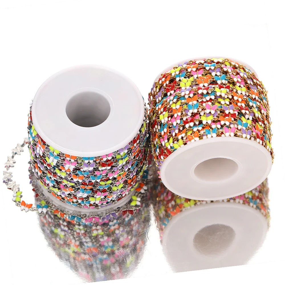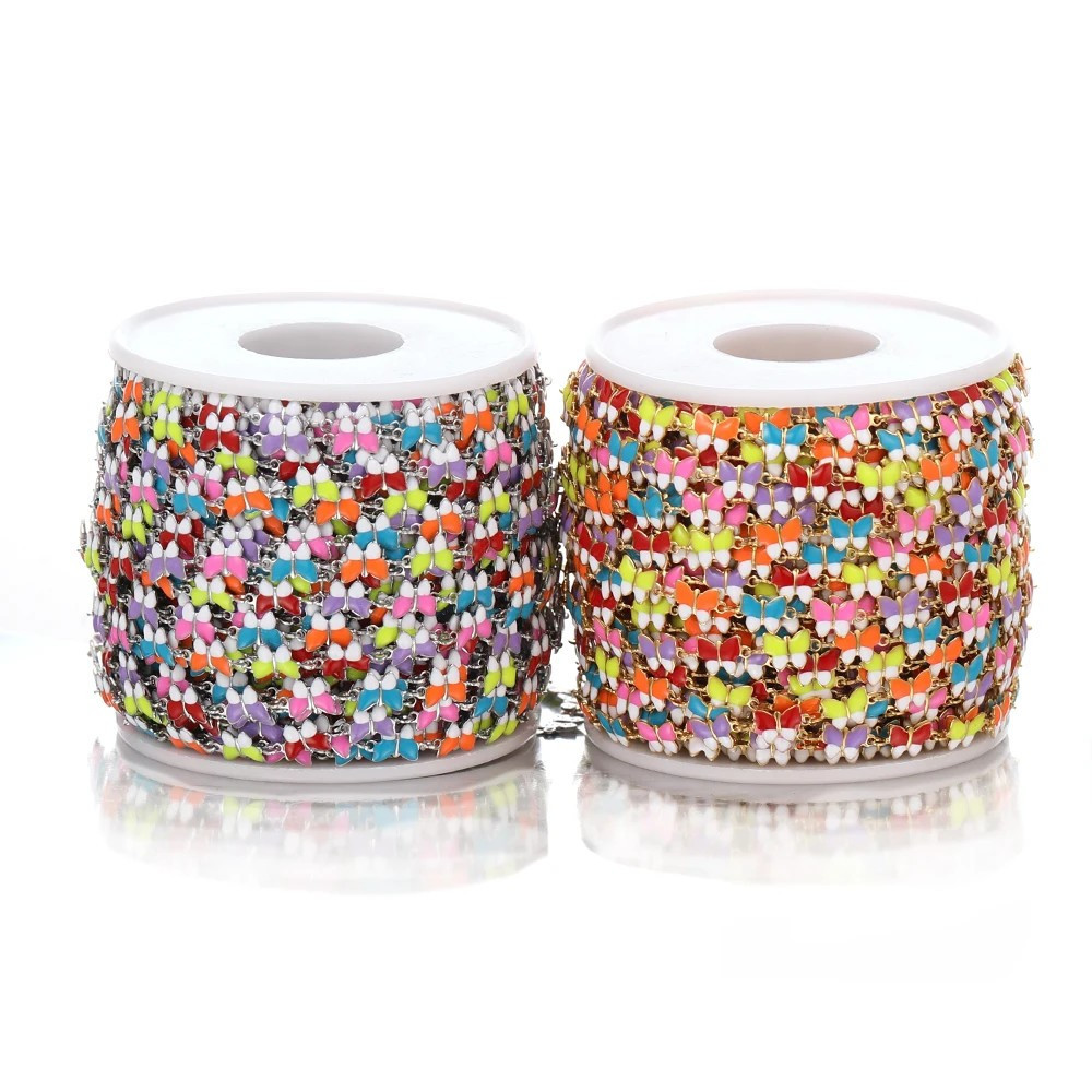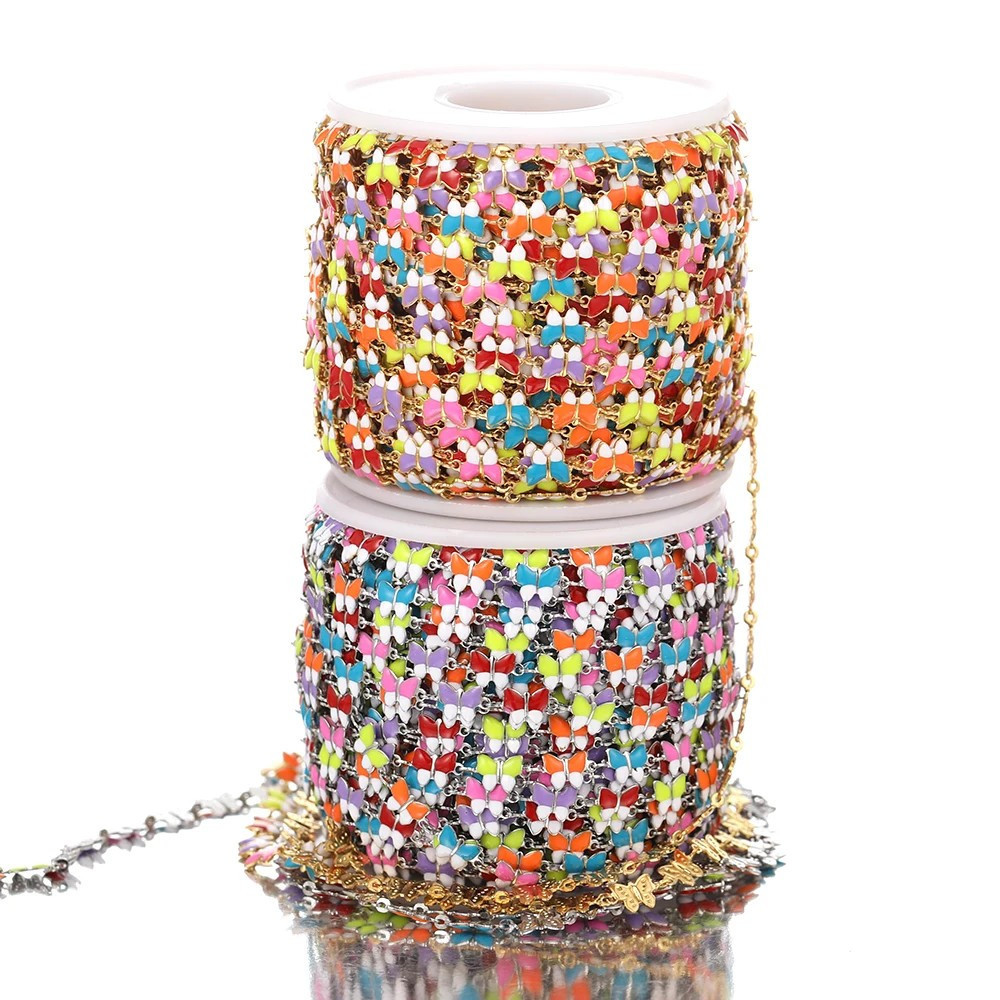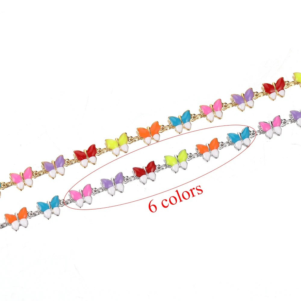 Řetízek ve zlaté galvanizaci s barevnými motýlky chirurgická ocel