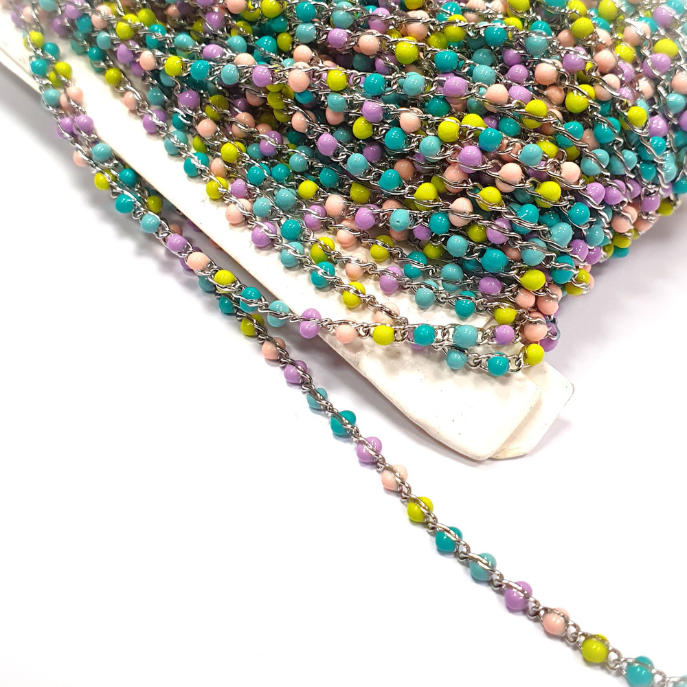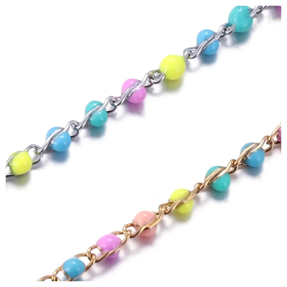Řetízek s barevnými kuličkami chirurgická ocel čtyři barevné varianty