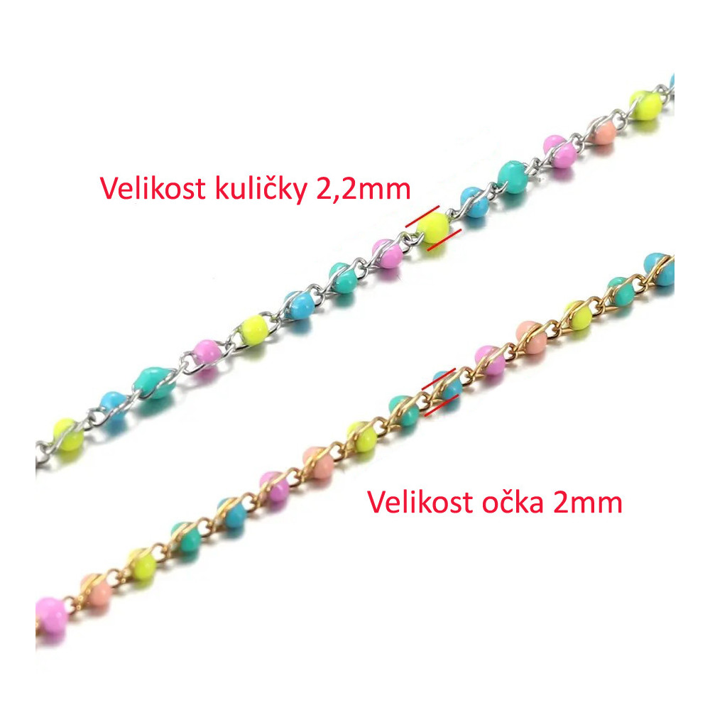 Řetízek s barevnými kuličkami chirurgická ocel dvě barevné varianty
