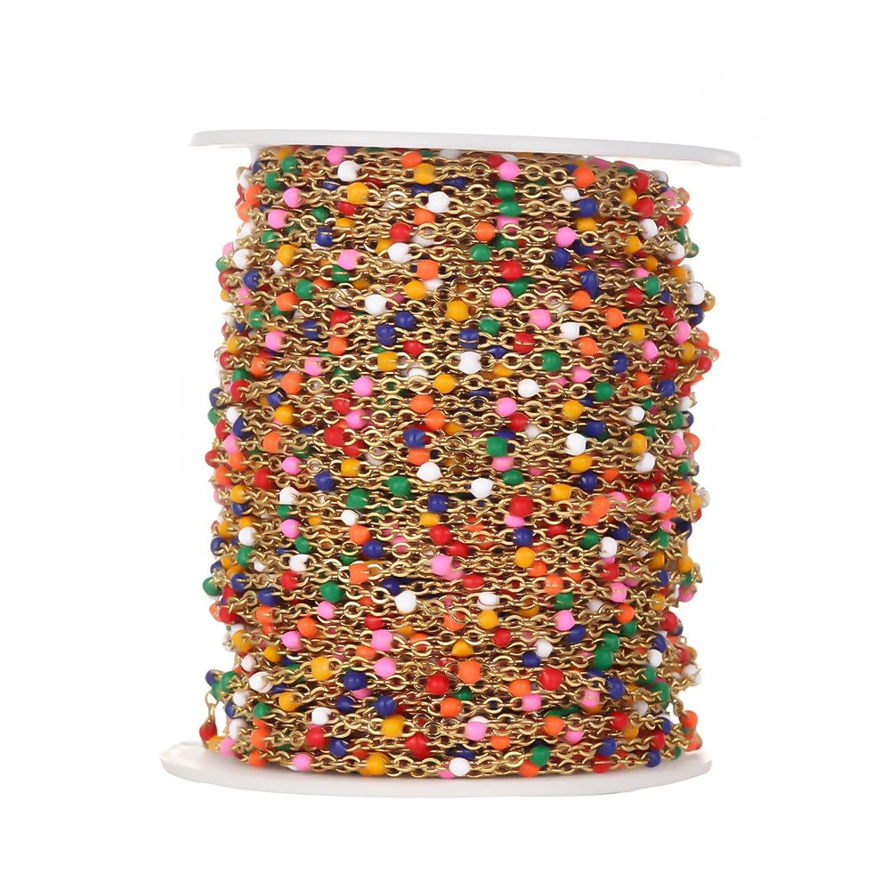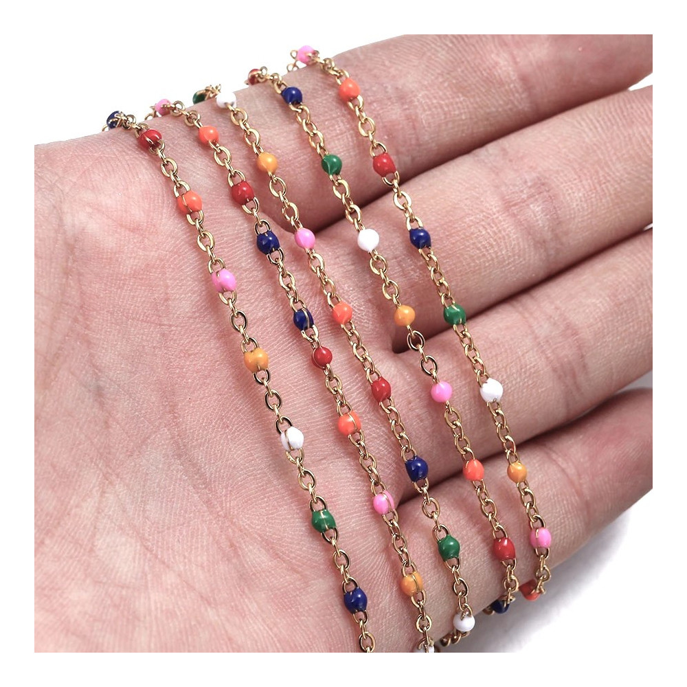 Řetízkovina s barevnými kuličkami 2mm z chirurgické oceli zlatá galvanizace