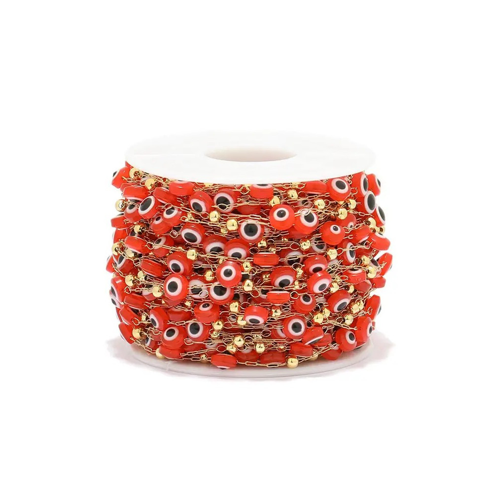 Řetízkovina s barevnými korálky z chirurgické oceli zlatá galvanizace