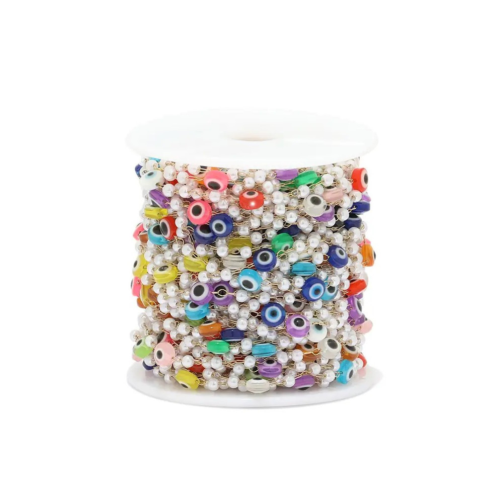 Řetízkovina s barevnými korálky z chirurgické oceli zlatá galvanizace