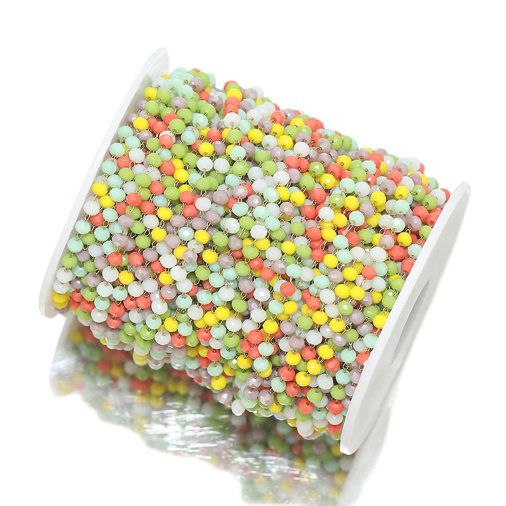 Řetízkovina s barevnými fasetovanými korálky zlatá galvanizace chirurgická ocel