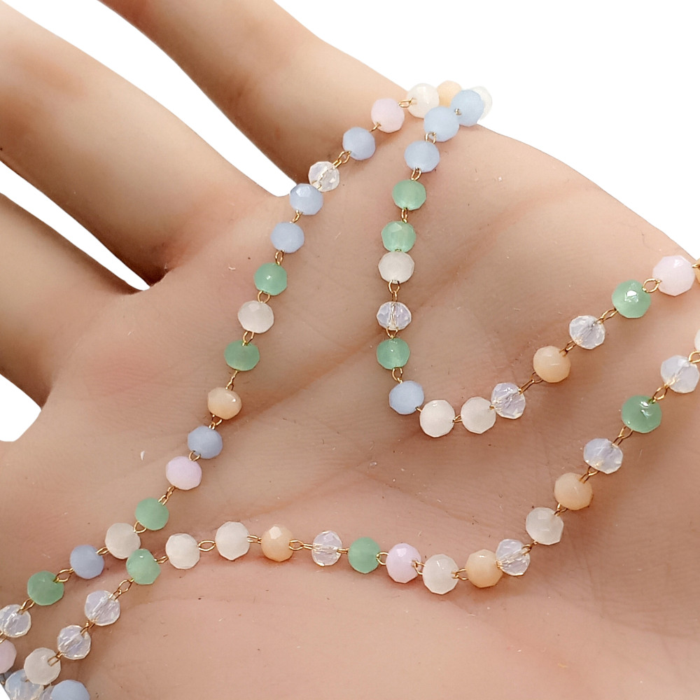 Řetízkovina s barevnými fasetovanými korálky zlatá galvanizace chirurgická ocel