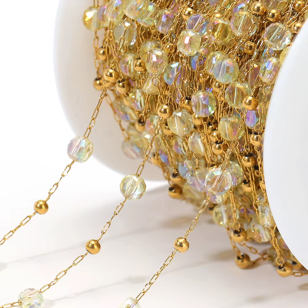 Řetízkovina s barevnými korálky zlatá galvanizace