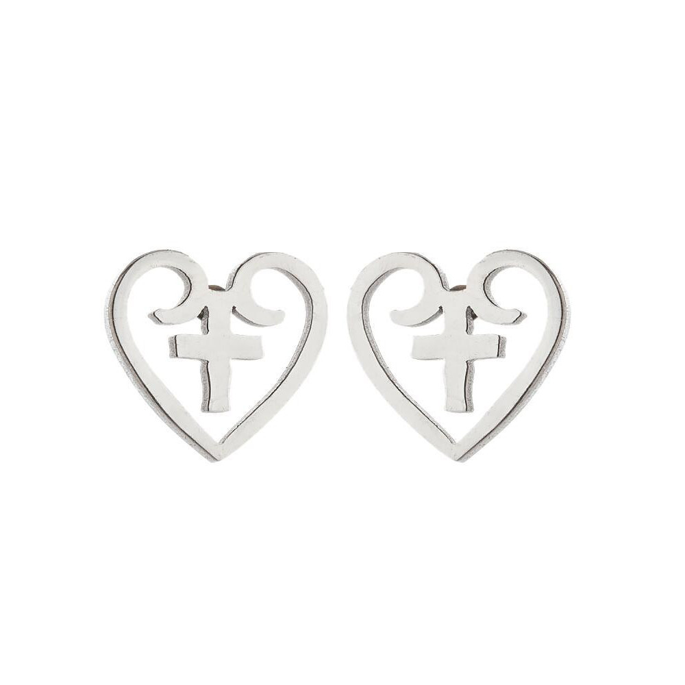 Náušnice srdíčka s křížkem chirurgická ocel