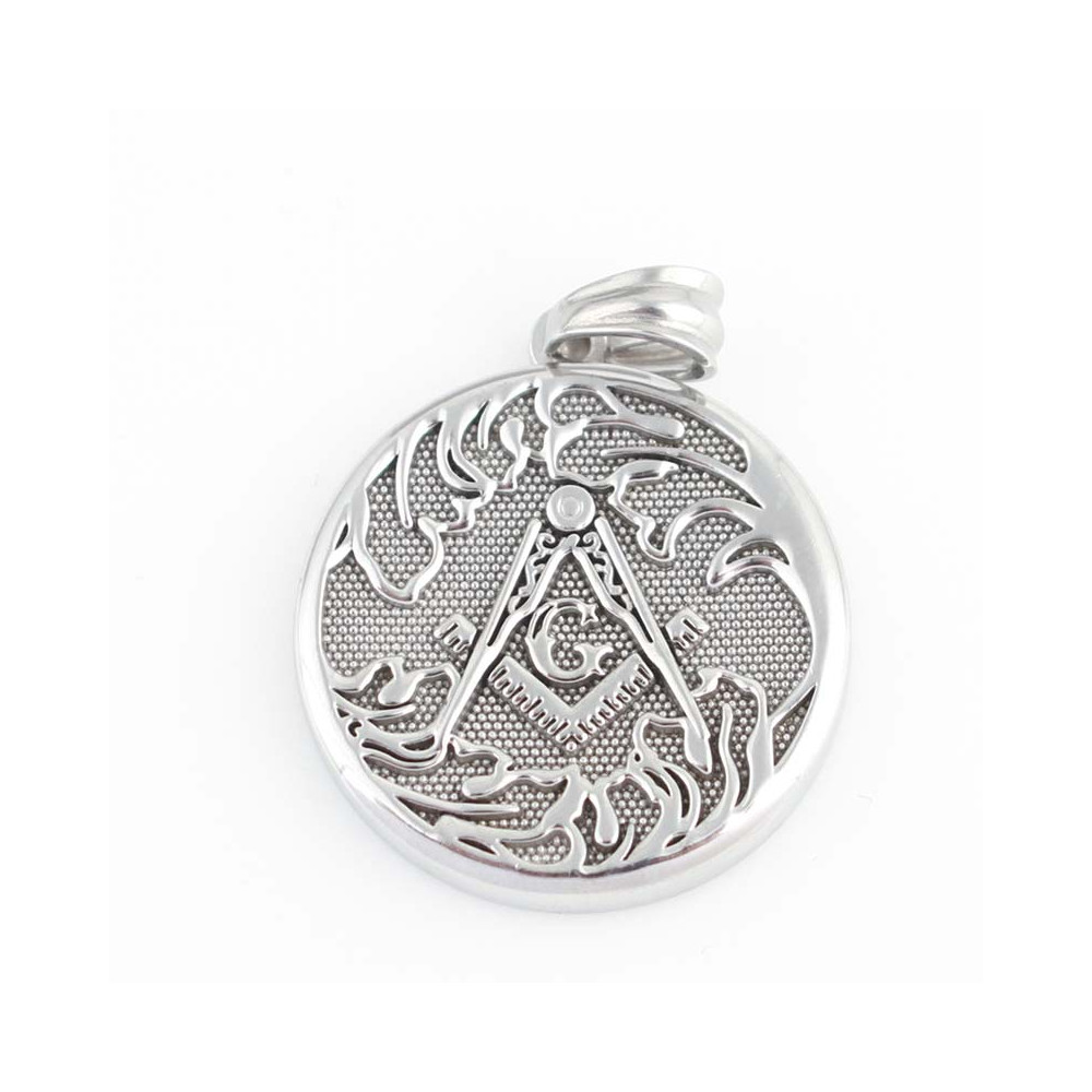 Přívěsek má z jedné strany obrázek znaků Svobodných zednářů, druhou stranu můžete použít na pryskyřici nebo na vložení fotky