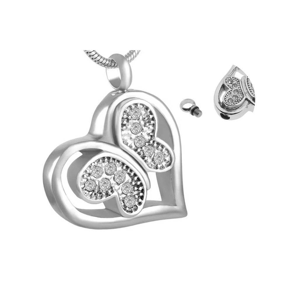 Přívěsek srdíčko s motýlkem chirurgická ocel