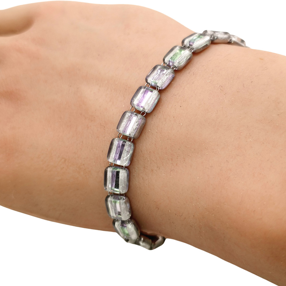 Náramek se skleněnými korálky nerezová ocel